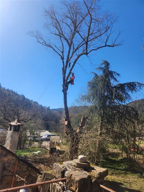 Lors de ce chantier à Aiguebonne (Lanuéjols) nous avons réalisé l’abattage par démontage d’un Tilleul malade, atteint par le cossus gate bois.